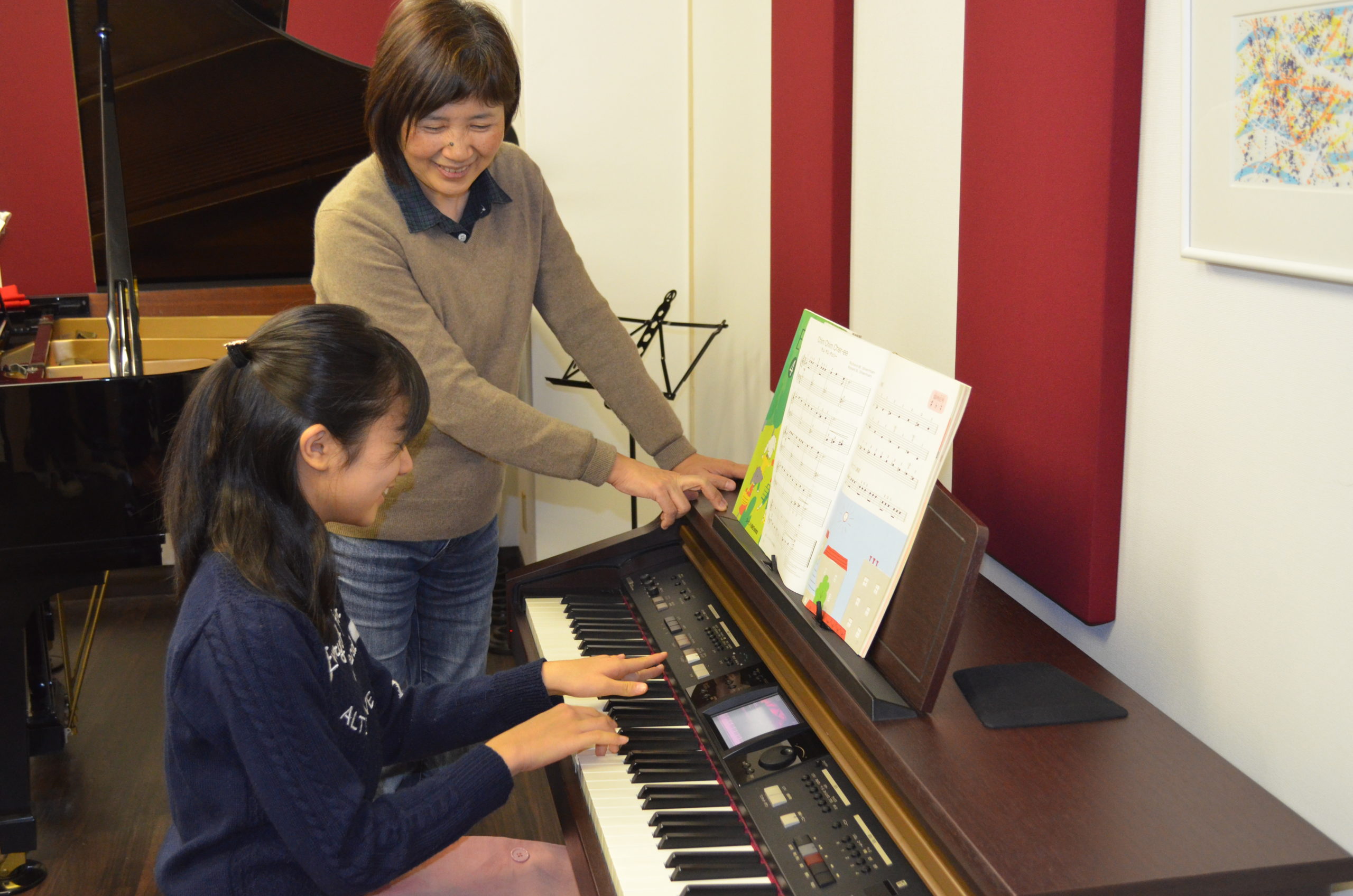 ゆとりの広さ、11個のレッスンルーム。発表会や演奏会にも利用可能なホールも完備。充実の楽器群も魅力です